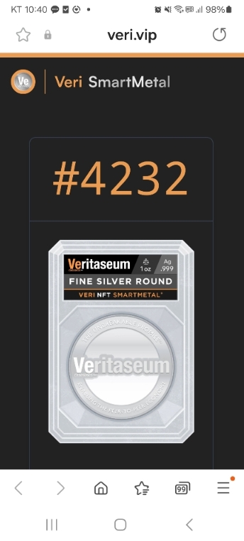 저는 오늘 Veritaseum SmartMetal (Fine Silver Round)